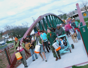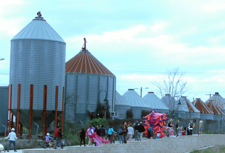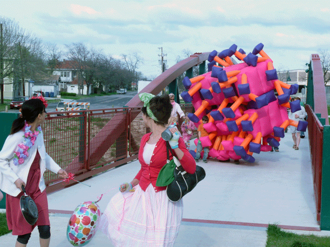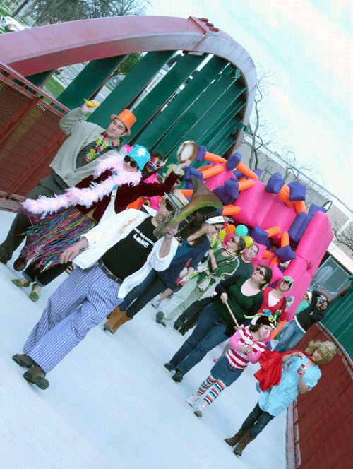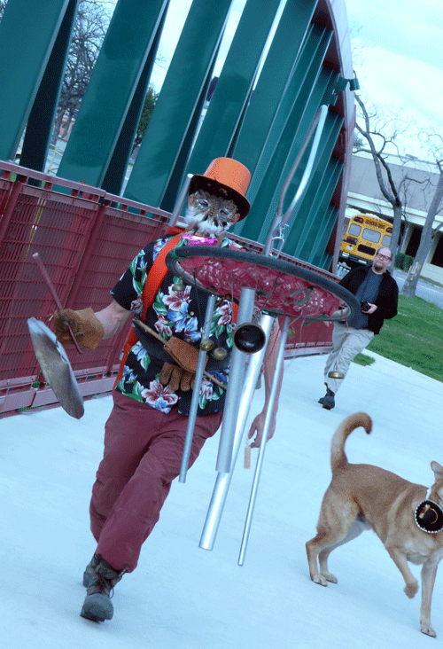 Approximately three dozen exuberant artists and possibly fewer accidental spectators helped kick off Contemporary Art Month this afternoon. In this case, photographs speak louder than words: