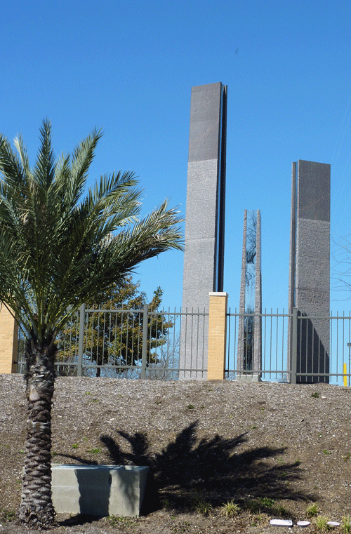 River Steles, on loan to the San Antonio Museum of Art from the family of William W. Atwell, stands on a piece of land created when a bend in the river was eliminated years ago to control flooding.