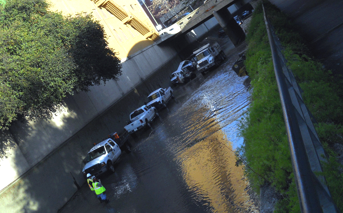 There are so many trucks, cranes and workers in the muddy river bottom this week it looks more like Loop 410 than the river bend. The silt-removal effort is a major (de-)construction project.