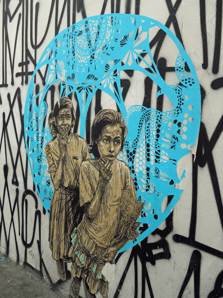 Wandering the streets of Oaxaca, we keep encountering urban art transcending youthful graffiti.