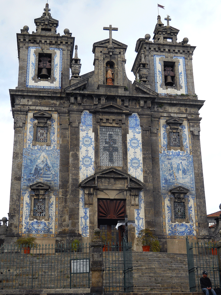 Azulejos. Unlike the graying stony-faced facades of churches in much of Europe, almost every church in Porto is marked by Portugal’s distinctive blue tiles.