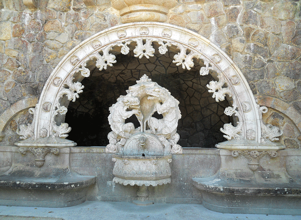 But the next owner lavished more embellishments on the estate, known now as Quinta da Regaleira. Born in Rio de Janeiro to Portuguese parents, Carvalho Monteiro (1848-1920) engaged Italian architect Luigi Manini (1848-1936), who designed the Bussaco Palace for the royal family, to work on the main house and grounds from 1898 to 1911. By the time Monteiro completed his extravagant transformation of the quinta, the days of summering with the royals had come to an end. Following the assassination of his father, young King Manuel II was living in exile In London.