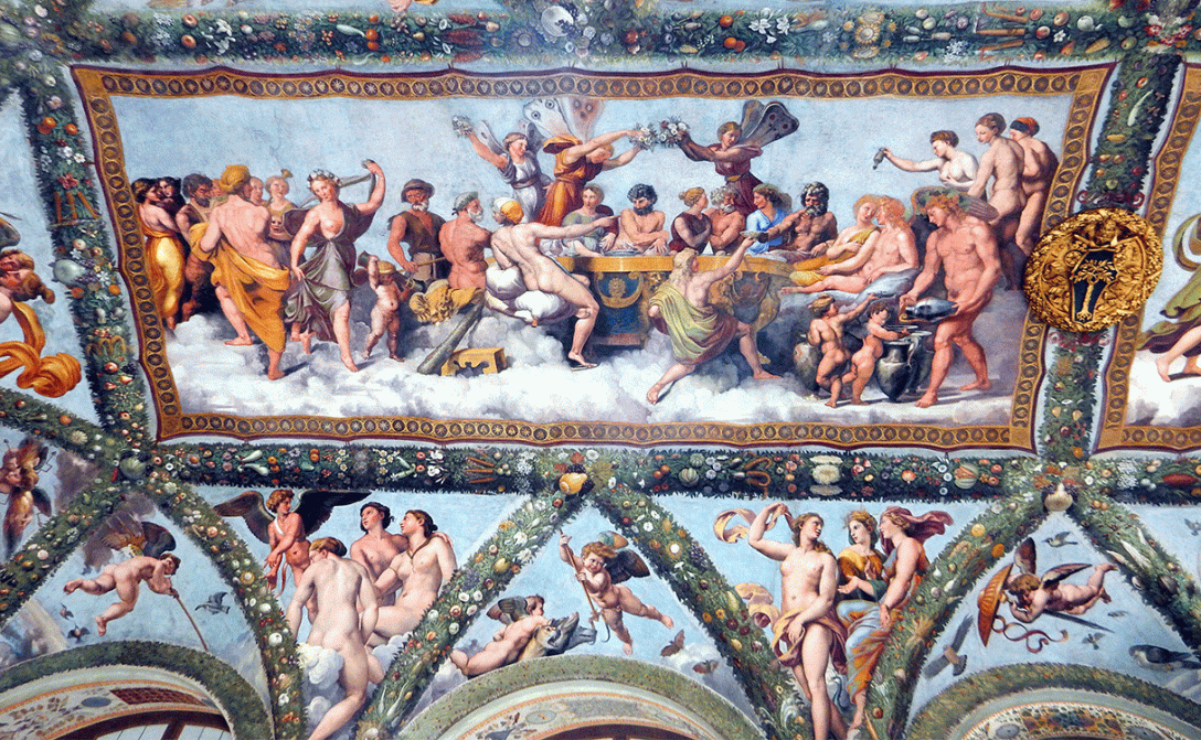 “Cupid and Psyche,” ceiling fresco by Rafael (1483-1520) in the loggia of Villa Farnesina