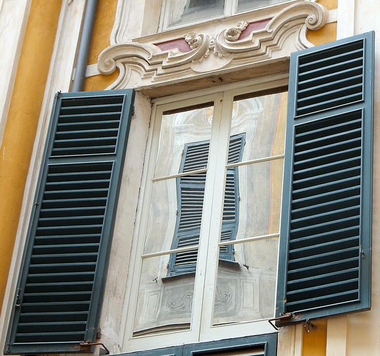 Wandering, sometimes lost, through the tangled maze of narrow, primarily pedestrian streets in Genoa’s medieval center, one is rewarded by a myriad of handsome, and sometimes downright quirky, architectural details.