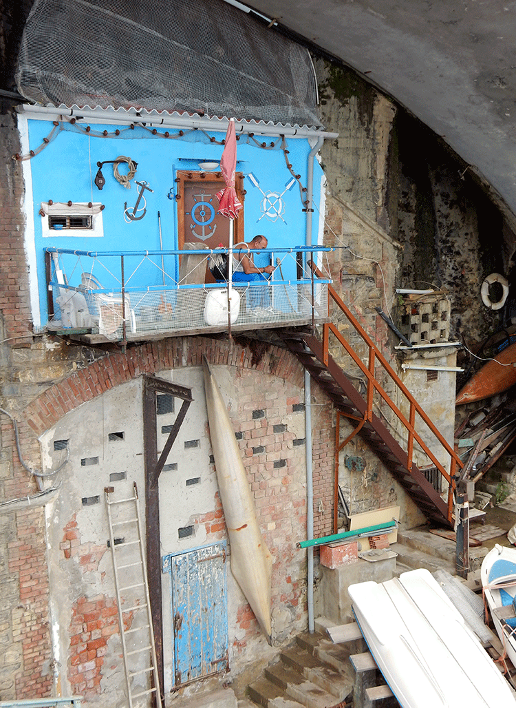 Taking a stairway down even closer to the sea than the passeggiata, we found an outside table perched on the balcony of Bagni Medusa for sampling some of the seafood the local fishermen haul in fresh daily.