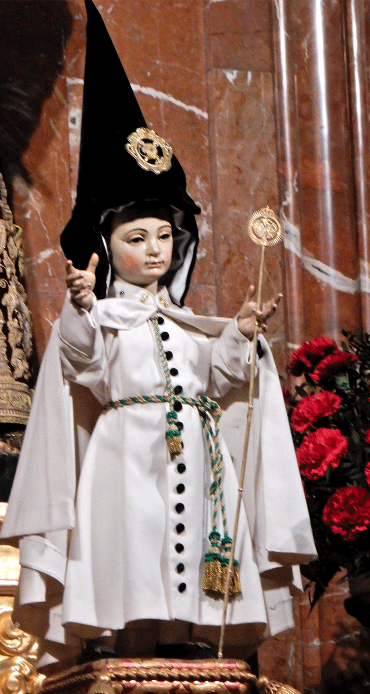 I offer no explanation for this elfin child perched in the Basilica of la Macarena, but he would not appear out of place in a Harry Potter film. Figures in Catholic churches often mystify me.