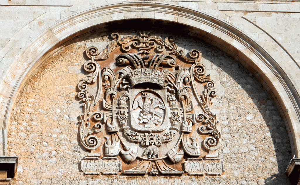 The altered Spanish coat of arms above the central door of the Cathedral of Merida