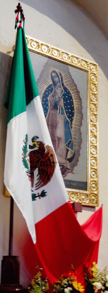 The coat of arms at the center of the facade of the Cathedral (view images below) contained royal symbols of Spain – castles and crowned lions. When Mexico gained its independence, the symbols at on the center of the shield were chiseled off and replaced with a crown-wearing Mexican eagle.