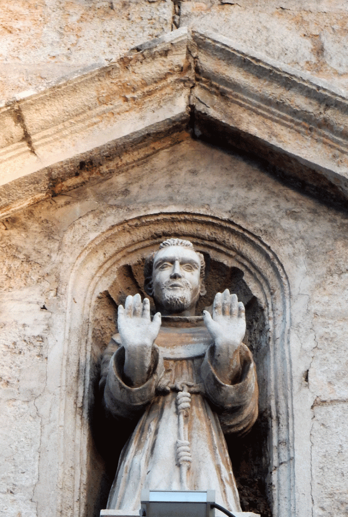 As Ildefonso was conducting Mass in his role of Bishop of Toledo, Spain, brilliant light suddenly illuminated the entire church. Many of the celebrants fled in fear, but those who remained witnessed the Virgin Mary herself descend and enthrone herself at the altar. Grateful for his devotion and defense of her purity, she even gifted him with a splendid vestment, a chasuble, from her own son’s wardrobe. His association with the miraculous illumination must provide Merida with extra excuses to set off fireworks on his feast day, January 23.