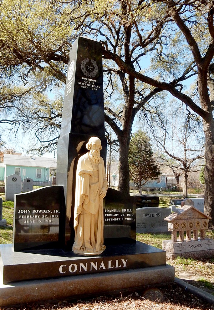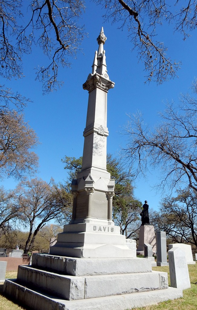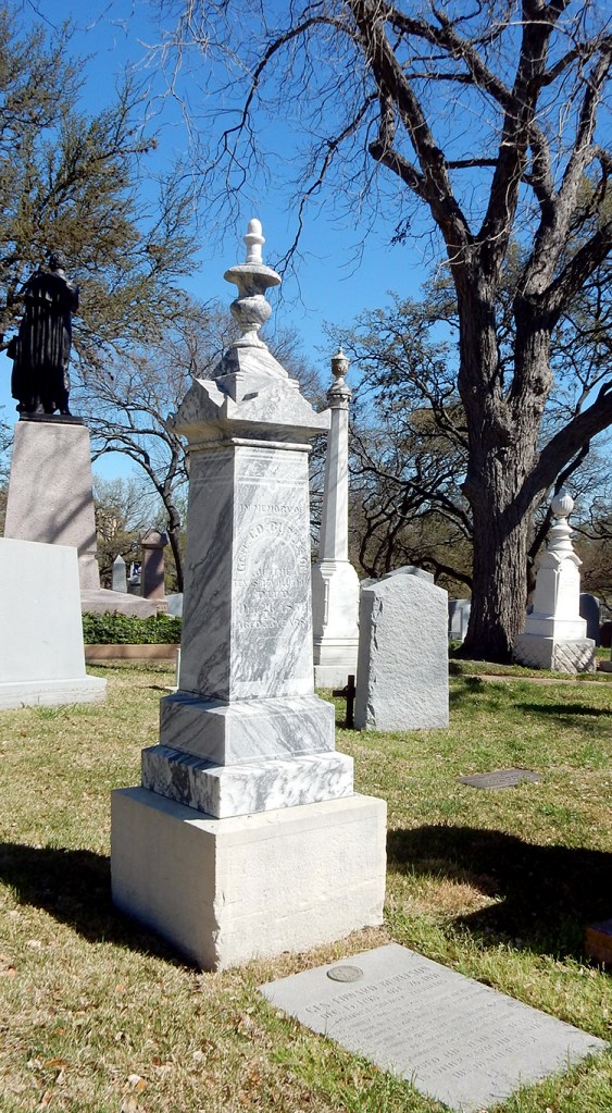 Eleven governors found their final resting place in the Texas State Cemetery. Judging from its grand height, one might assume Edmund Davis (1827-1883) was one of Texas’ favorite governors, but many Texans did not forget their Confederate heritage quickly. Davis fled Texas during the Civil War and was made a Colonel in charge of recruiting members of the First Texas Cavalry for Union forces. His governorship during the bitter Reconstruction period increased the lingering animosity, but his brother funded his monument to ensure it soared over most of its neighbors.