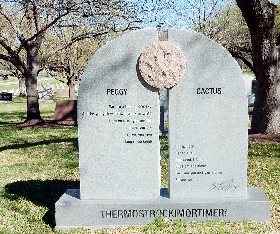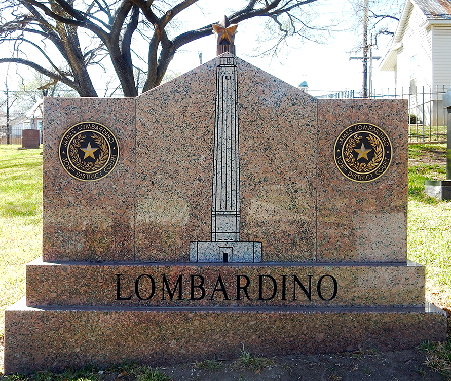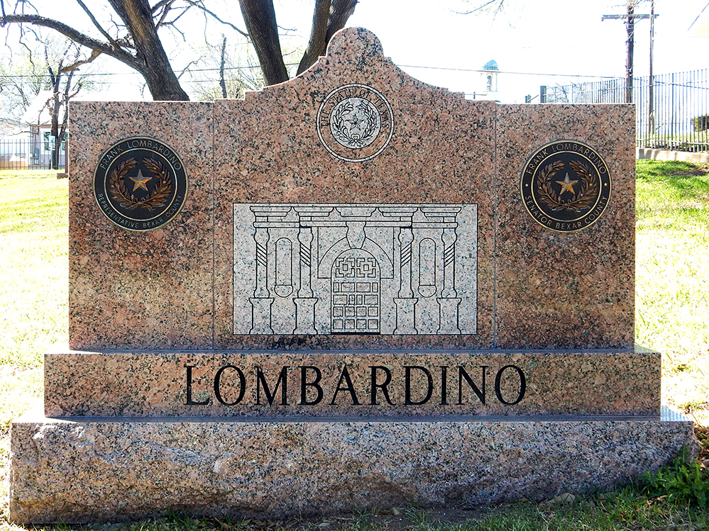 I am including snapshots of the Lombardinos because of their striking inclusion of the Alamo and the San Jacinto Monument imagery. And, well, Pinky, because the Mister was somewhat bored by this excursion and found her stone mildly amusing – memorable punster that she was.