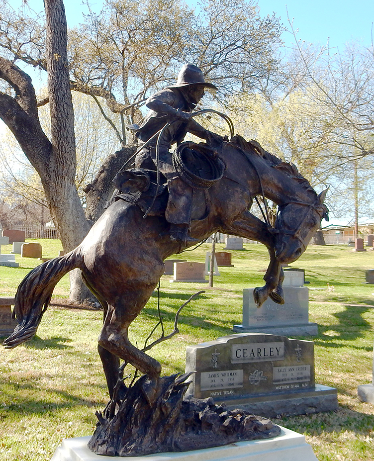 Cowboy riding atop the headstone of painter/sculptor Gerald Harvey Jones, 1933-2017