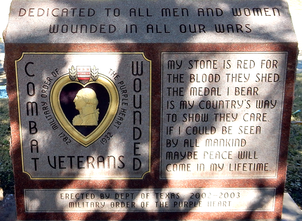 Monuments for other groups include one for veterans who merited Purple Hearts and to those of Viet Nam.