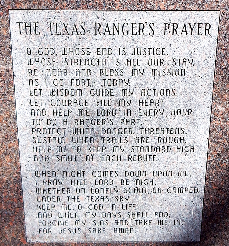 William Angelo Dial, 1903-1963, offers “The Texas Ranger’s Prayer” on the flipside of his marker.
