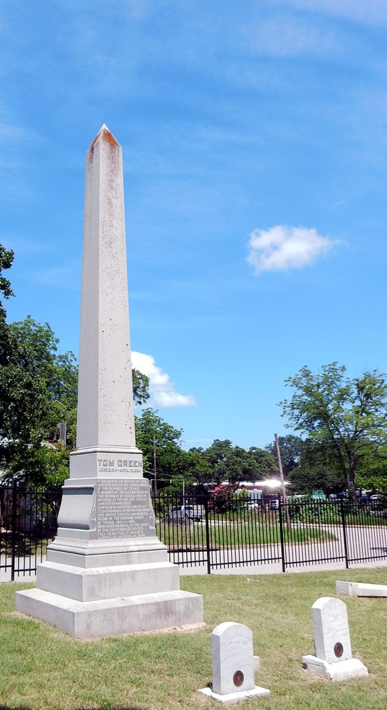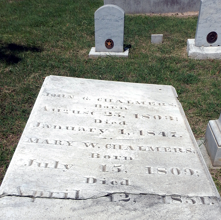 Virginia-born Tom Green arrived in Texas in time to help man the “twin sisters” cannon during the Battle of San Jacinto. He married one of Mary and John Chalmers’ daughters, Mary Wallace Chalmers (1828-1866), and was clerk of the Texas Supreme Court prior to the outbreak of the Civil War. His leadership skills led to his promotion to Brigadier General in command of Texas Confederate forces toward the end of the war. The Red River was low and narrow at Blair’s Landing in Louisiana in April 1864, making the Union’s ironclad gunboats appear vulnerable. But Federal sharpshooters were hidden and poised to fire on the opposite bank when General Green led the charge. Gunboat cannon fired, and bullets rained down on the Confederates. Union forces lost seven men; Confederates lost 200, General Green among them.