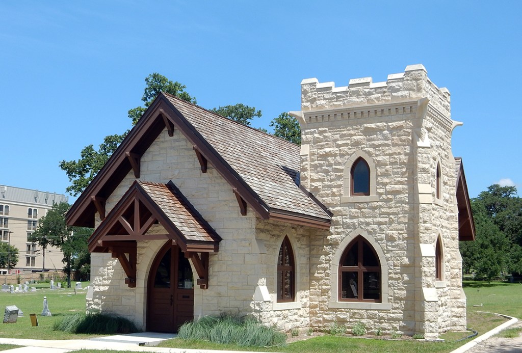 As the city grew, so did its first major cemetery. A chapel, designed by architect Charles Henry Page (1876-1957), was added to the grounds in 1914. Page was the son of an English-born stonemason who moved to Austin to work on the Texas State Capitol.