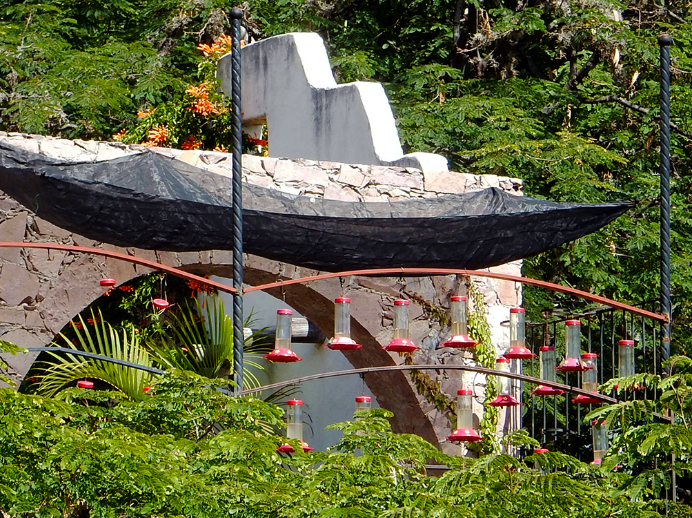colibri feeders outside Emma Restaurante