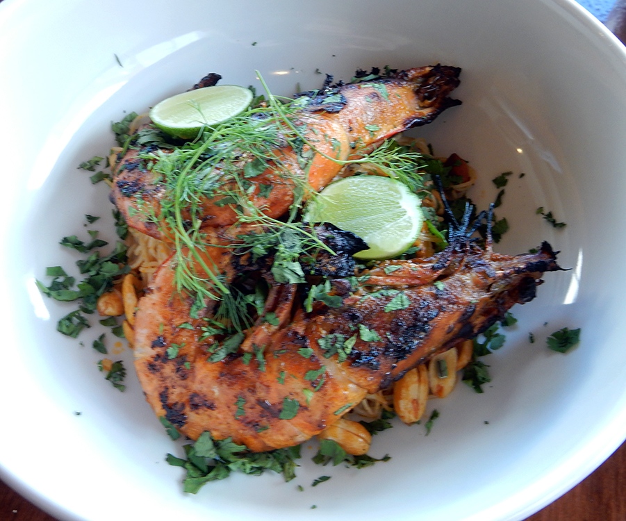 Emma Restaurante giant shrimp atop spicy fideo