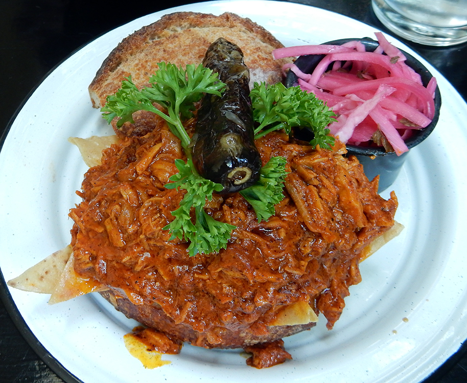 an overstuffed cochinito pibil sandwich at La Victoriana