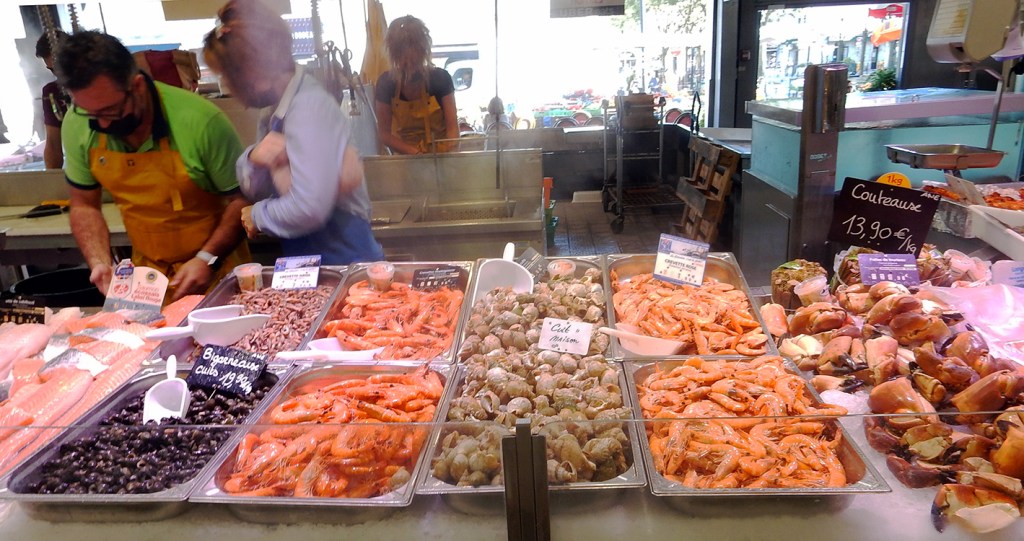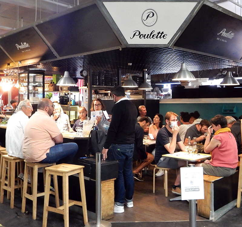 Marche des Capucins is the city’s oldest public marketplace, meriting the moniker of the “Belly of Bordeaux.” The abundance and quality of its seafood, produce and cheese stalls inspired numerous chefs to open booths there in the past decade, but, while we were in Bordeaux, COVID and August vacations temporarily pared down their numbers.