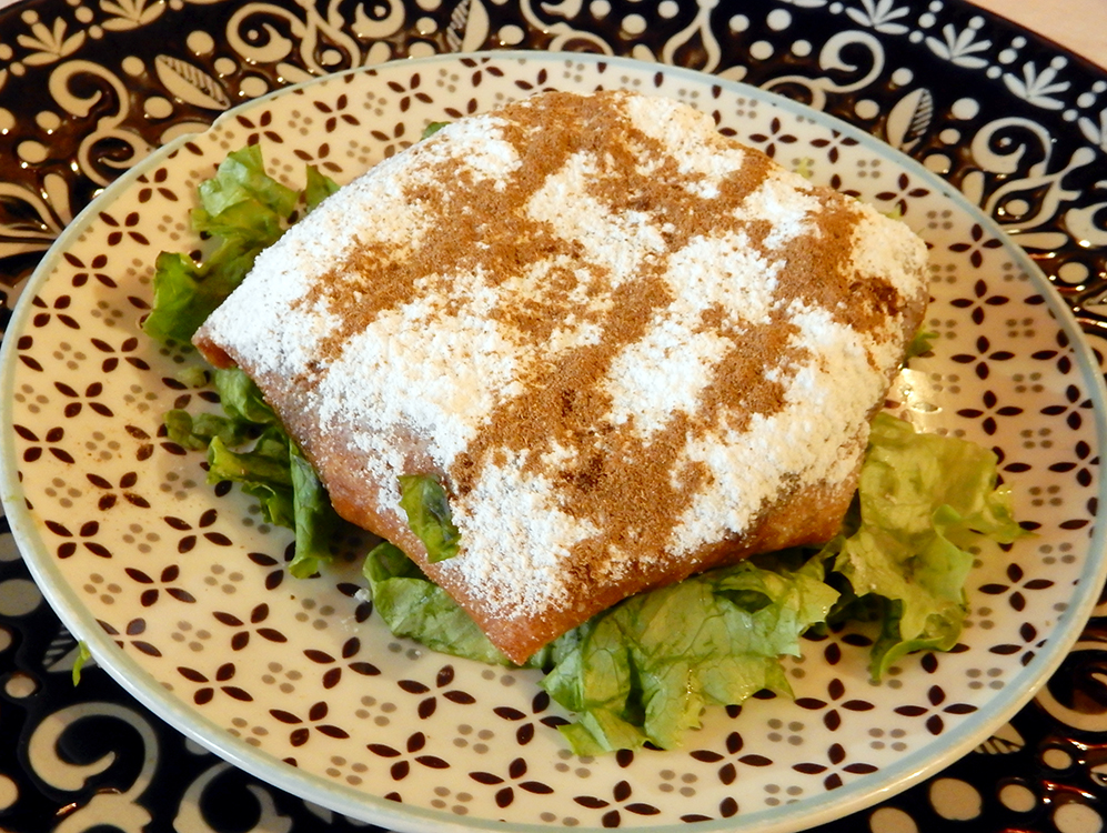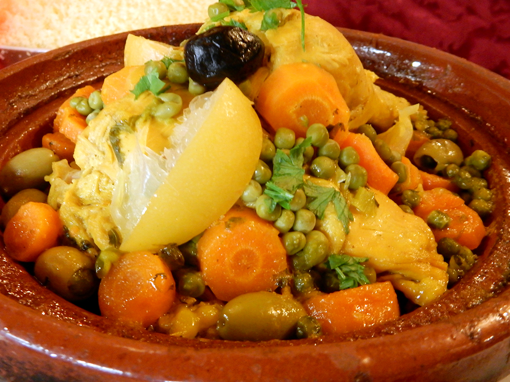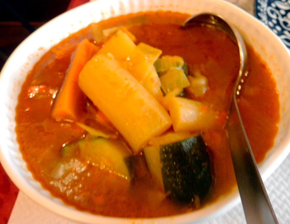 Switching hemispheres now, Restaurant Le Marrakech attracted us with the promise of mounds of steaming hot vegetables to spoon over couscous. The jewel-toned, richly patterned interior was comfortably cushioned. Delicate layers of flaky filo were found in the starters of brick berbere (chicken) and bastilla, chicken with the addition of almonds, honey and powdered sugar.
