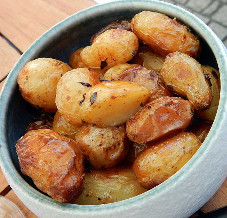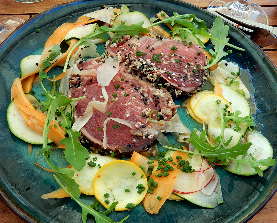 Seafood is the specialty of La Pointe Chartrons, found amongst the restaurants clustered around La Place du Marche des Chartrons, anchored at its center by an 1869 former market hall renovated in 1998. The restaurant was the newest kid on the block when we were there but had no trouble filling its large outdoor patio. Although tapping into the fresh seafood readily available near Bordeaux, the chef feels free from the constraints of traditional French preparations. The grilled fresh sardines transported us to Lisbon, while the Japanese tataki preparation of red tuna reminded us of meals out in Malaga. The croquetas chipirones, filled with velvety potatoes studded with bits of cuttlefish and blackened by their ink, were pure Spain.