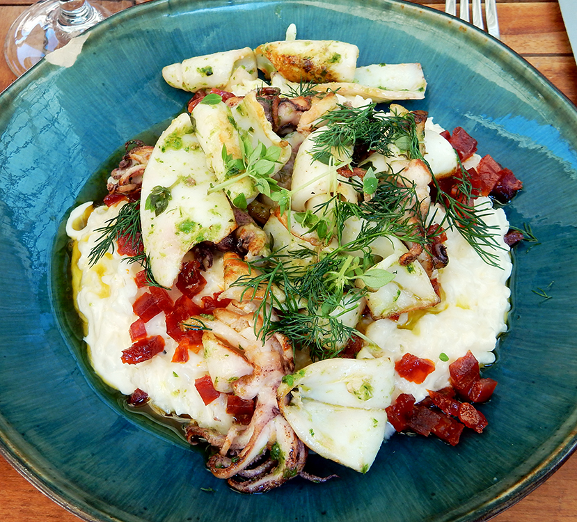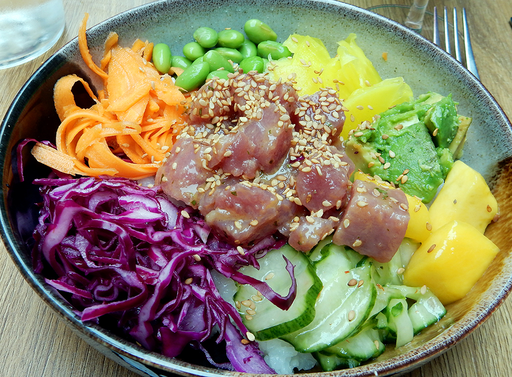 United States of Pacific is a pleasant sidewalk people-watching perch for grabbing a healthy poke bowl with power balls of ground almonds with peanuts, shredded coconut and cranberries for dessert. And then there was Tupaq, seductively offering fresh Peruvian-style seafood. The tables along the sidewalk provide an unappealing view of a parking garage, but that seems to stop no one. Reservations are needed. The ceviche was wonderful, and the sweet slices of scallops melt in your mouth.
