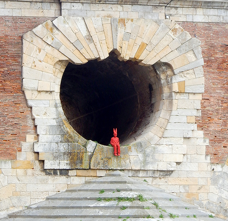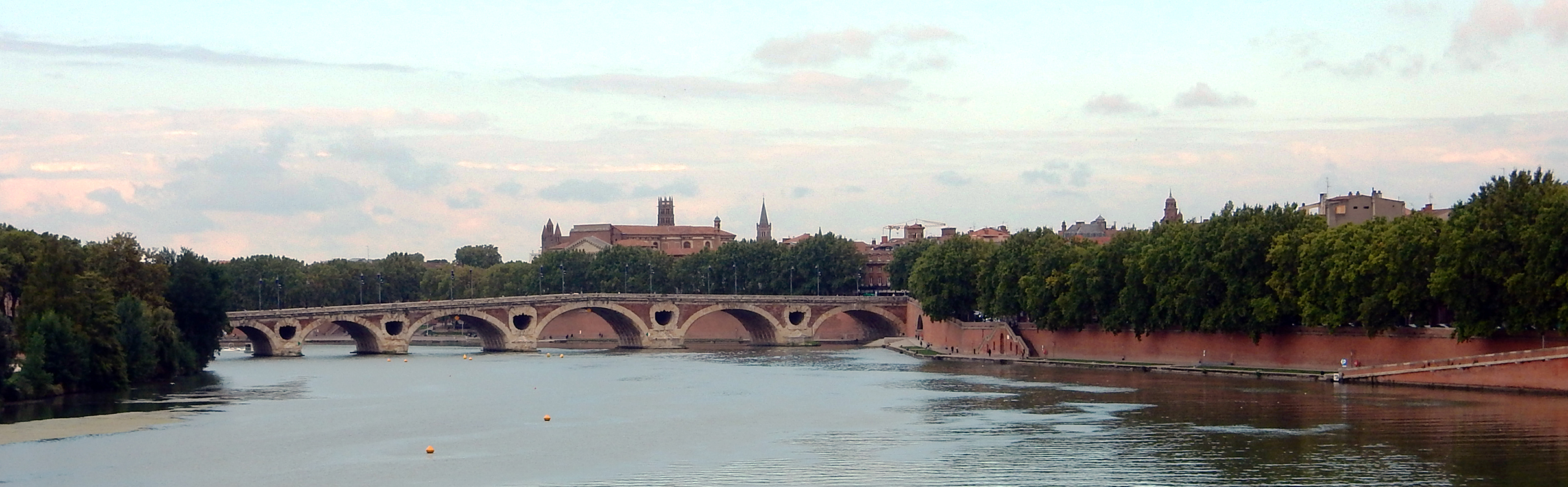 I know not who might have contributed this perky long-eared fellow to this arch in the Pont Neuf in Toulouse, but his perch offers a prime view of the waters of the Garonne flowing from the Spanish Pyrenees toward Bordeaux and of those wandering along its banks. Finished in 1659 yet never losing the word “new” in its name, the handsome red brick and light-colored stone bridge took more than a century to complete.