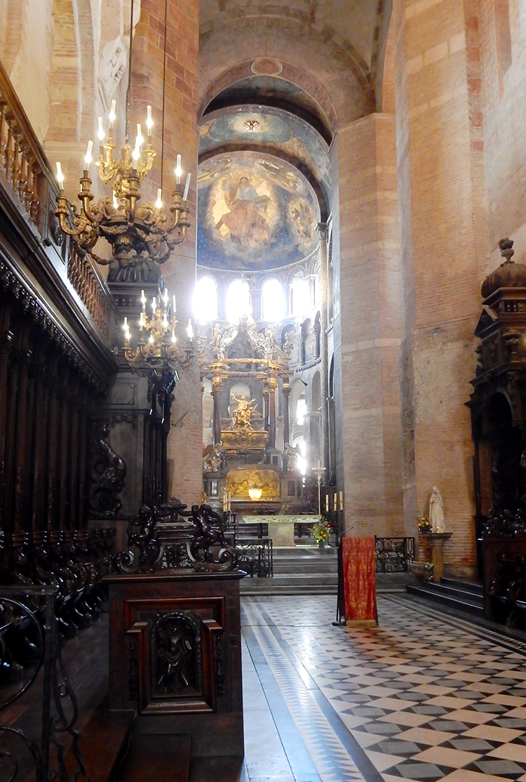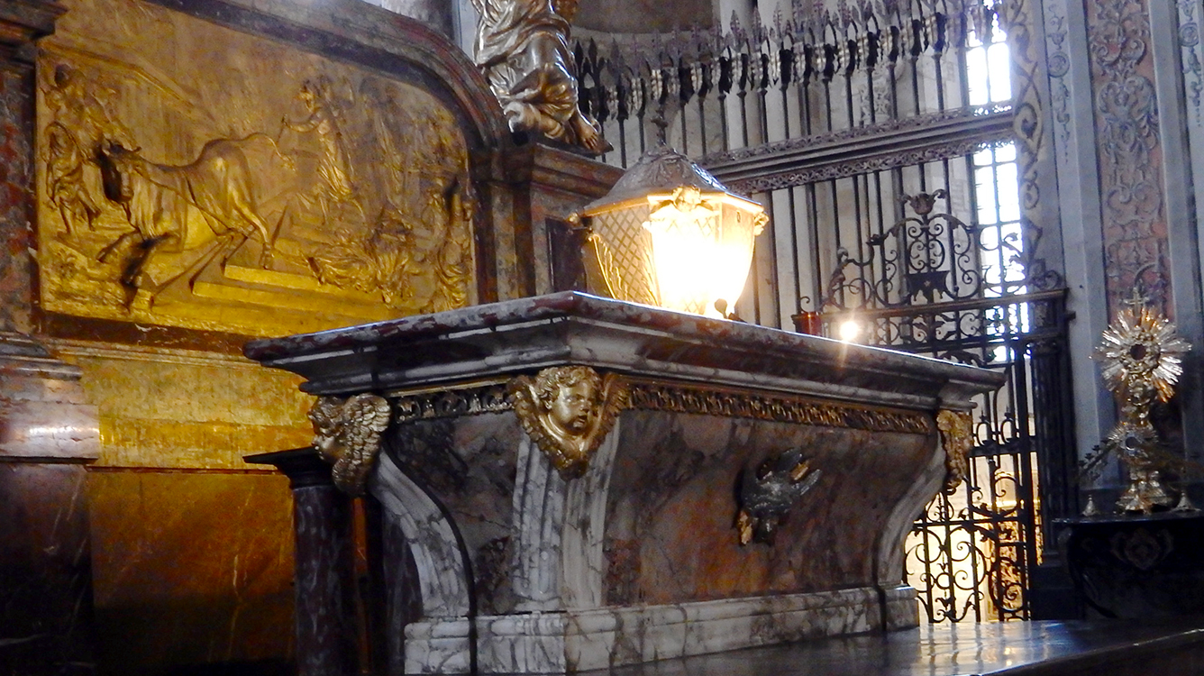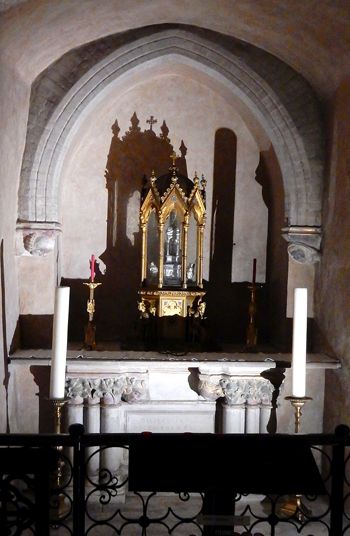 The apse of the basilica circles around the sides and back of the altar, with nine chapels radiating out from it to house relics. A crypt is found at the heart of this area, below the altar.
