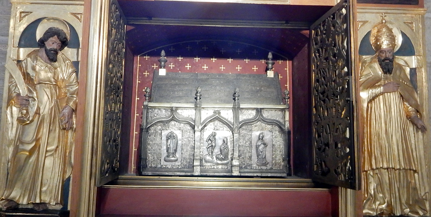 Relics are testimonies of God’s saving power in the lives of the saints; thus, especially during the Middle Ages, they have exerted a strong attraction for the faithful, who hoped to obtain protection or healing through the intercession of the saints…. In the reliquary chests of the ambulatory of the basilica in Toulouse lie the remains of saints Lawrence, Boniface, Anthony the Abbott and Vincent of Saragossa. In addition, a thorn from the Crown of Thorns, donated by Alphonse, Count of Poitiers, brother of St. Louis, has been kept there since the mid-13th century. More than 200 fragments of bones of various saints are also housed in the basilica, along with a piece of the True Cross and the remains of Sts. Etienne, Bernadette Soubirous and Therese of Lisieux. After St. Peter’s in Rome, the cathedral of Toulouse houses the largest collection of relics in the world.