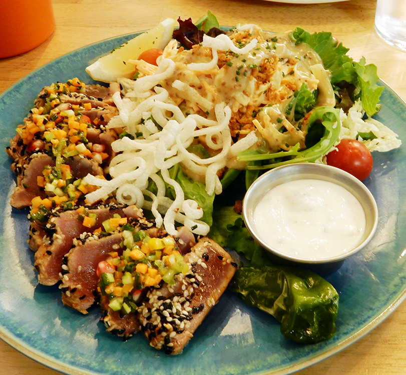 Rue des Filatiers was our neighborhood, so we tried several other casual spots there as well, all with fine street-side people-watching opportunities. We found ourselves grabbing amply filled empanadas to-go for cocktail-hour snacks from El Almacen – Empanadas. Miss Fish appeared to be brand new, or only recently reopened, and boasted a nice variety of seafood. It seems a place that should prove particularly popular with British travelers missing their fish and chips.