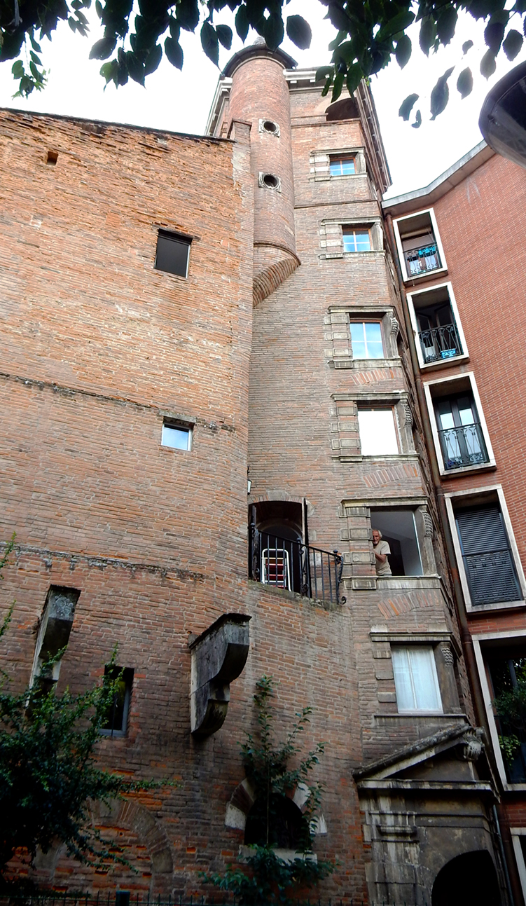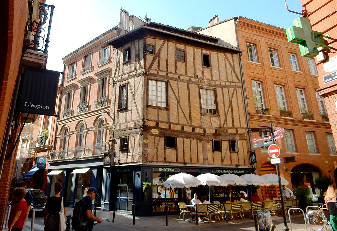 When I started sorting through our images of Toulouse, more shots seemed to be landing in the random file than normal. Part of that is the patterns of the city itself. The imaginative use of brick and stone, far more striking than the staid formal Williamsburg-look abundant in my original home state. And the way Toulouse tends to reuse not tear down the old, with an unbridled free-spirited approach to mixing centuries of architectural styles in the same block.