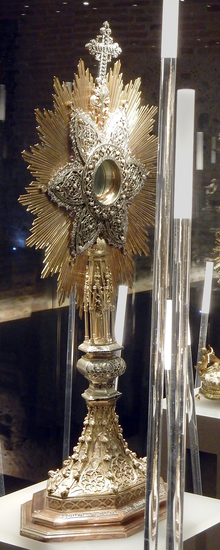At some later point, the palace was turned back over to the Catholic Church for the Archbishop’s luxurious home. About a decade ago the interior was transformed into a stunning space for a museum, Alma Mater, with beautiful woodwork and soft illumination creating atmospheric viewing of the priceless collection of religious art contained within.