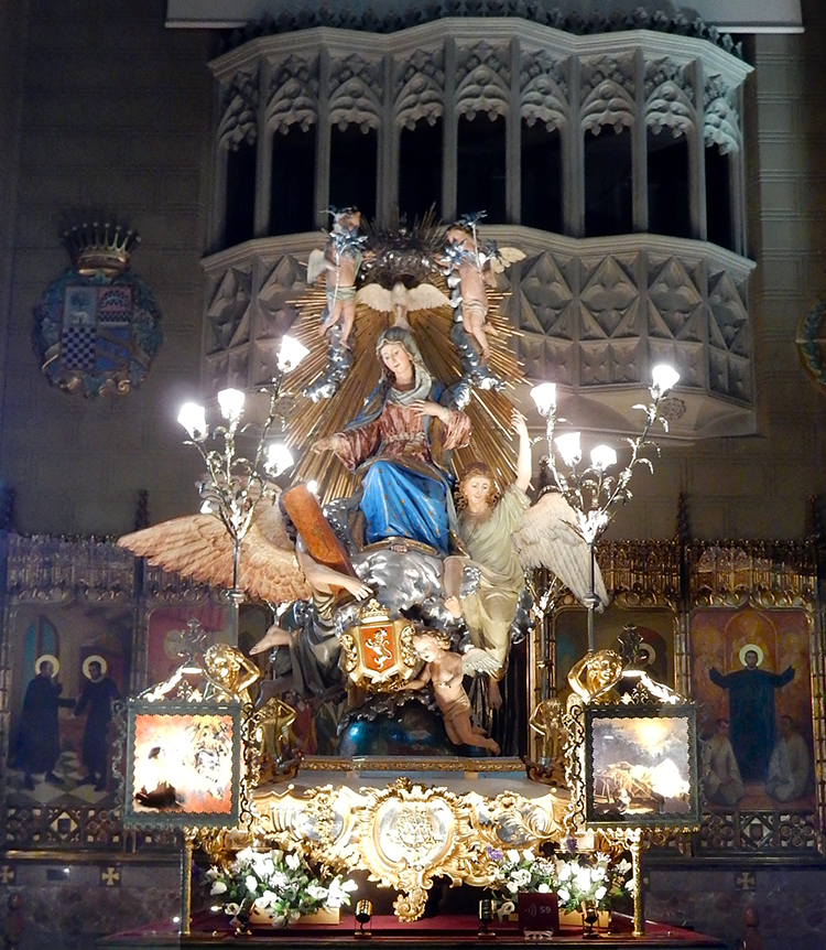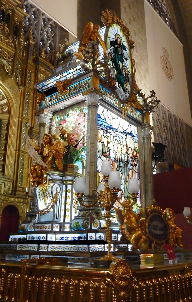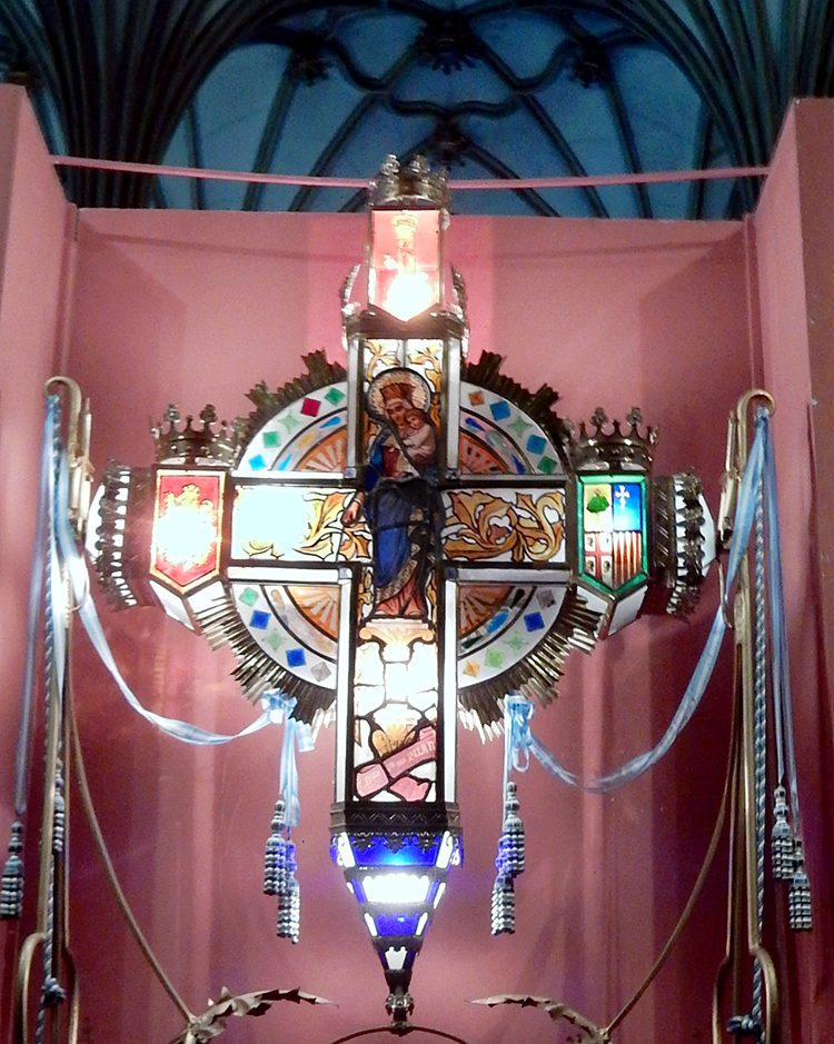 Above: Thirty-thousand pieces of glass were cut and assembled to create a 14-foot-long illuminated reproduction of the Basilica of Our Lady of the Pillar carried through the streets of Zaragoza every October 13th.