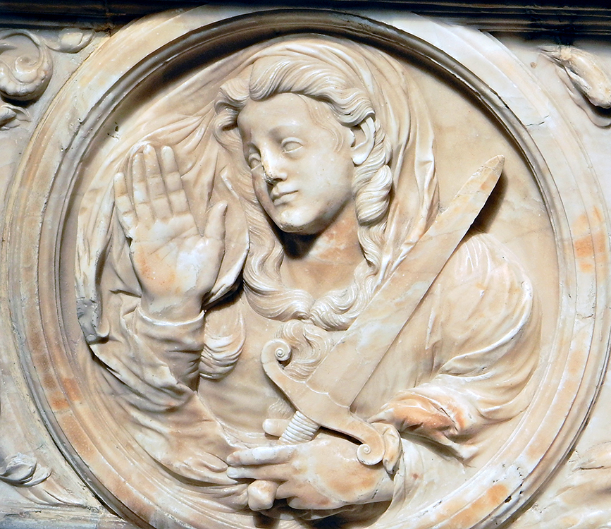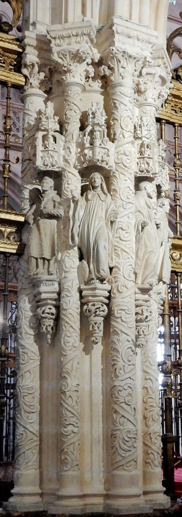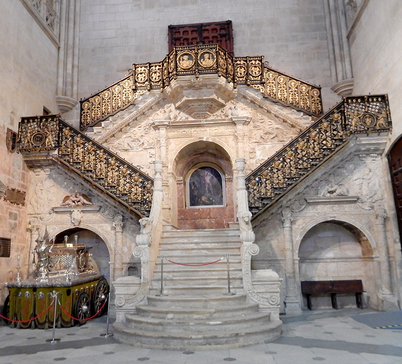King Philip II’s glowing description of the gleaming white dome that crowns the intersection of the horizontal arms of a cross with the main nave in the Cathedral of Saint Mary of Burgos seems appropriate. Designed by Juan de Vallejo and Francisco de Colonia, the octagonal dome was completed in 1568 to replace an earlier lantern, less than 50 years old, that collapsed rather spectacularly in 1539. The Latin inscription above Santiago at the base of the dome translates to: “In the midst of your temple I will praise you and give glory to your name because you do wonders.”