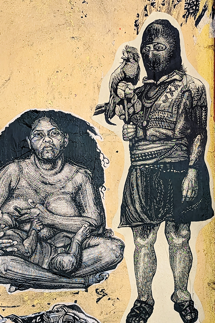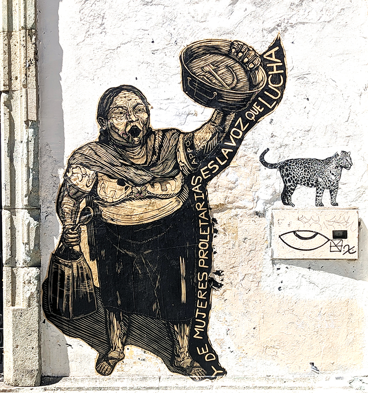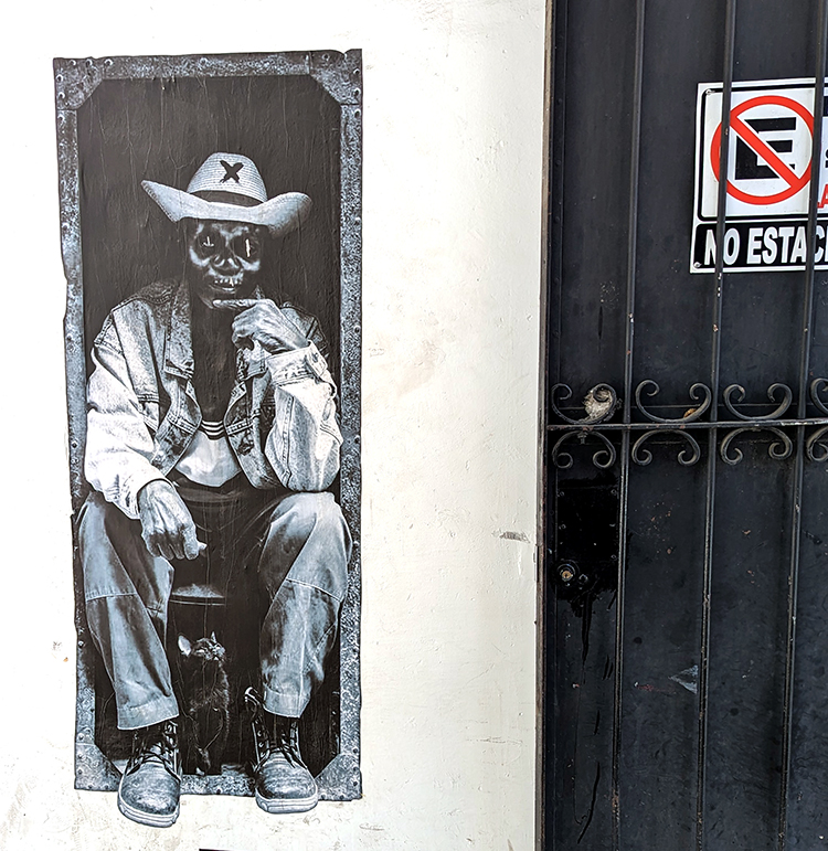 A prior post introduced Oaxaca’s Colectivo Subterraneos along with its series of “Los Nadies” on a pink-walled house in Barrio de Xochimilco, but these figures have popped up throughout the historic center of the city.