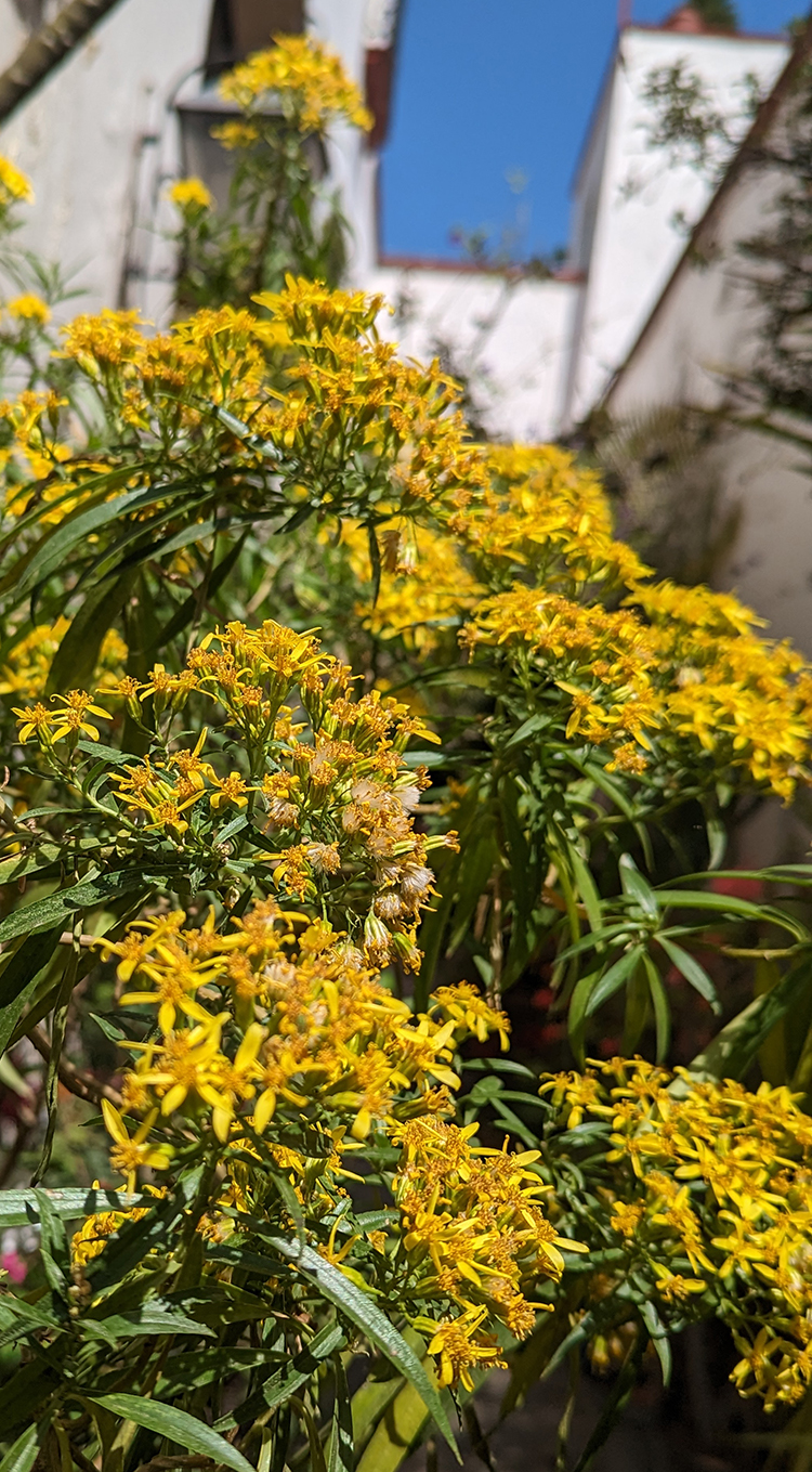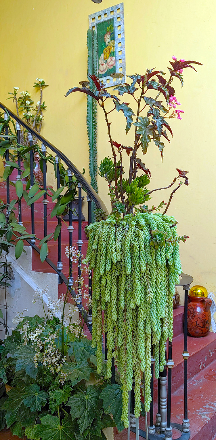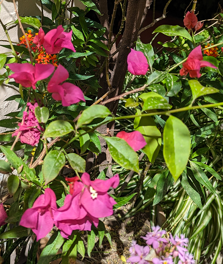Offering a colorful bouquet in gratitude for the hospitality extended by our host last week in the historic center of Queretaro. Of course, we plucked these flowers virtually from his own garden filling all his patio space with plants that would rival those of any nursery. He has succeeded in creating a magical, soothing respite in the heart of city.