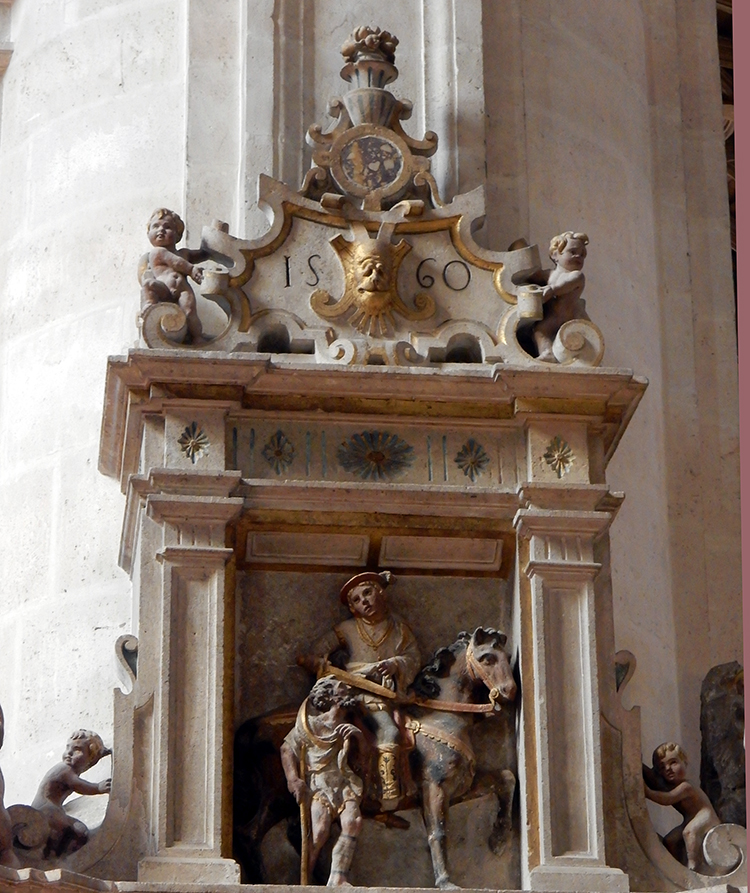 Aside from those emerging from the imagination of Hieronymus Bosch, the devils above are about the most frightening I’ve ever encountered in a painting. Particularly the one on the right with multiple faces in all the wrong places. These details and the one of San Miguel weighing the good and the bad are plucked from an enormous mural, “The Last Judgment” by Alonso de Sedano (1465-1533), displayed in the church of San Nicolas de Bari, which is perched just above the Cathedral on the Camino de Santiago.
