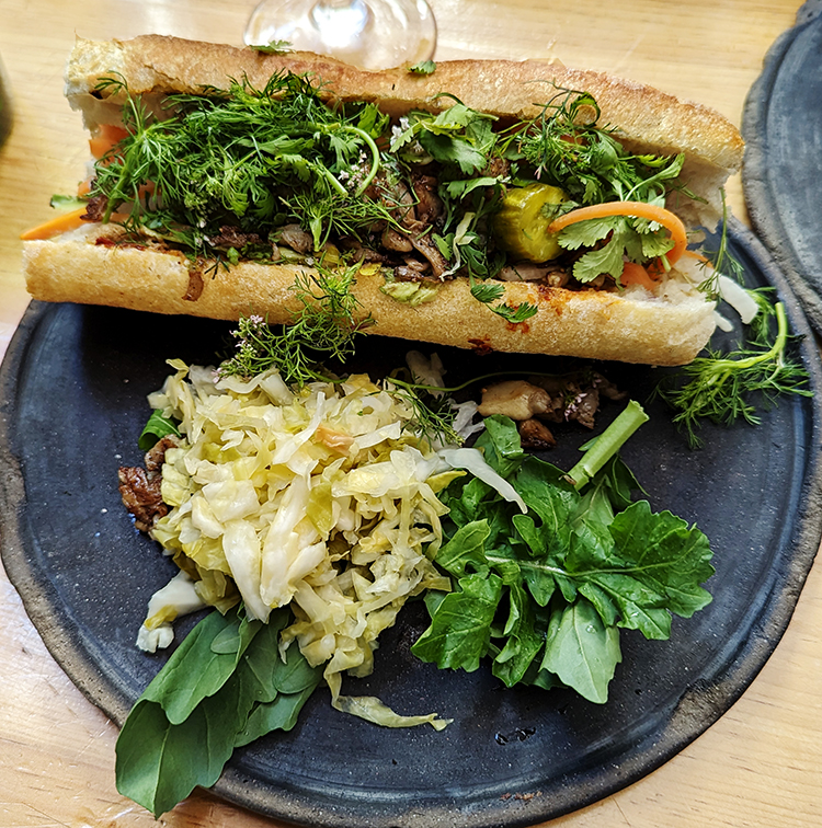 Boulenc is a wonderful place to buy artesan breads, gorgeous pastries and their own chunky peanut butter. They have a pizza oven fired up all the time, but the Mister opted for what he declared the best bahn mi he has ever had.