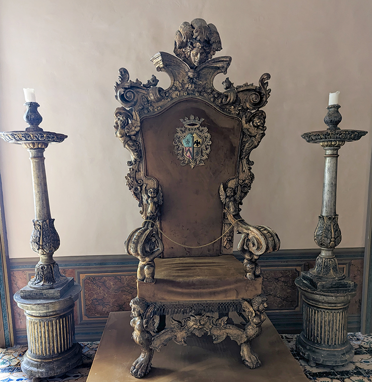 Corradino’s son, Baron Giacomo (1711-1760), supervised the 1720 design of a four-story palace with more than 90 rooms, which took 40 years to complete. While the ground floor was relegated to food storage and stables, the second-floor piano nobile was decorated lavishly for entertaining guests – a necessity later as another member of the family succeeded in acquiring the title of Prince of Villadorata in 1774.