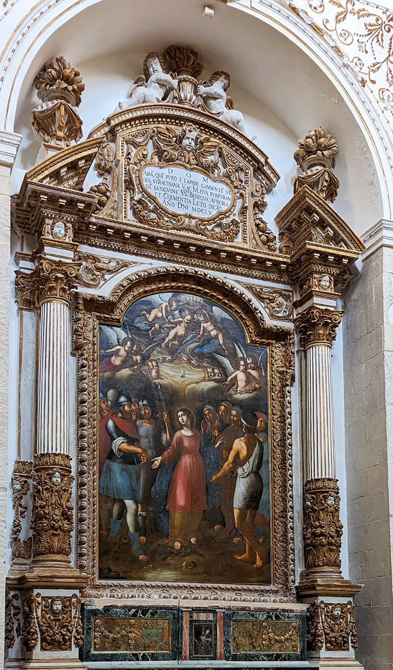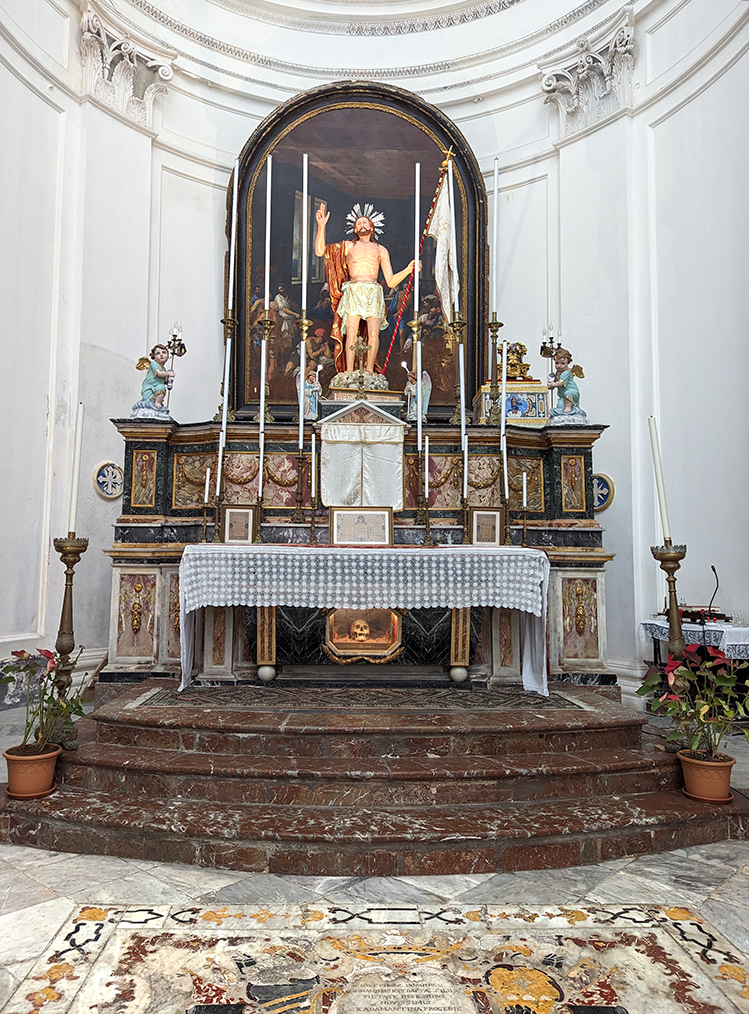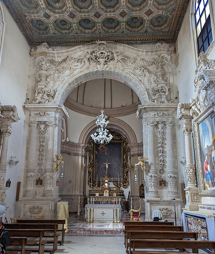 Chiesa di San Filippo Apostolo varies from the pattern a bit. It sits atop the site of a medieval synagogue obtained following the Inquisition 1492 mandate for the expulsion of Jews who refused to convert. Remnants of the synagogue’s purification baths for women are found three levels below the church.