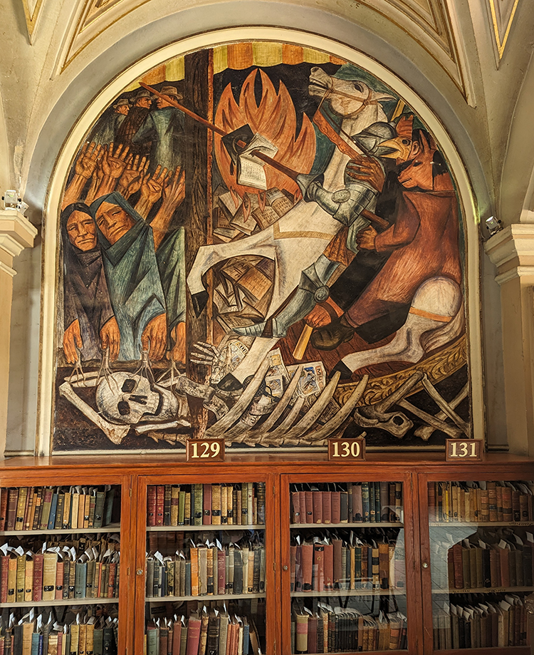 While it seems Father Clavijero might nod in approval of the messaging contained in Mexiac’s mural, it’s impossible for me to envision what his reaction would be to the nudes above displayed in the center bearing his name.