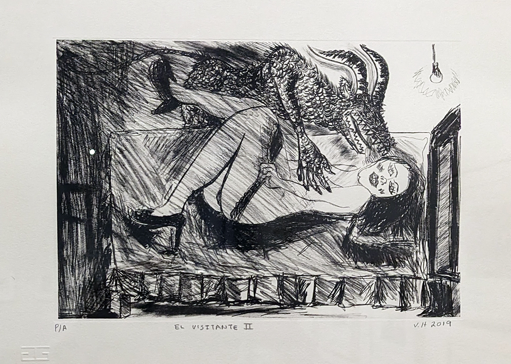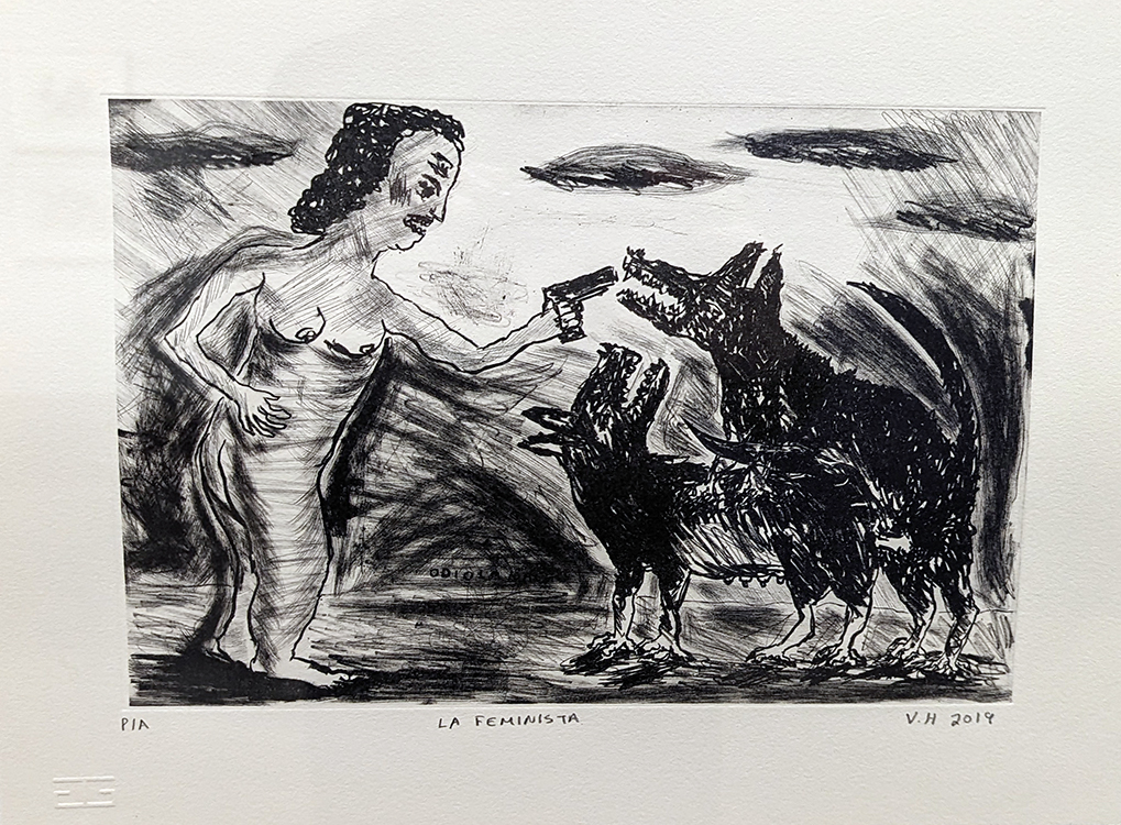Known for his strong connections with Taller de Grafica Popular, Mexiac probably would have applauded an exhibit hanging in one of the galleries through September 5. “Cinco-Grafias” includes the works of five contemporary Jalisco artists using an evolving technique for printmaking known as siligraphy. The artists employed a wax pencil to draw on aluminum surfaces before coating the non-printing areas of the image with silicone. The exposed areas then were rolled with ink and paper pressed against the drawing.