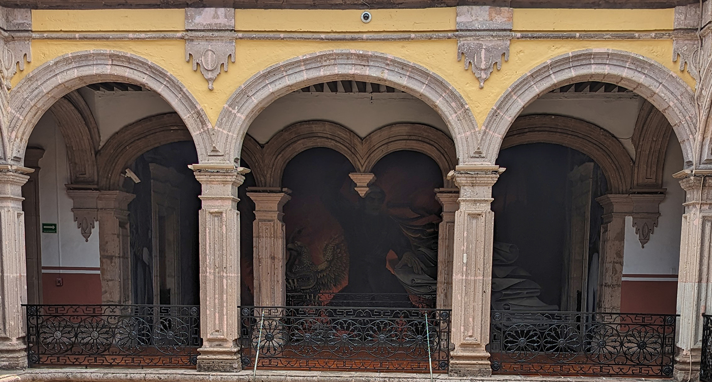A Belgium engineer hired in 1884 to convert the structure into Michoacan’s supreme court added French architectural detailing to the façade and interior. Particularly distinctive are the pinjante arches, floating double arches with no central support columns.