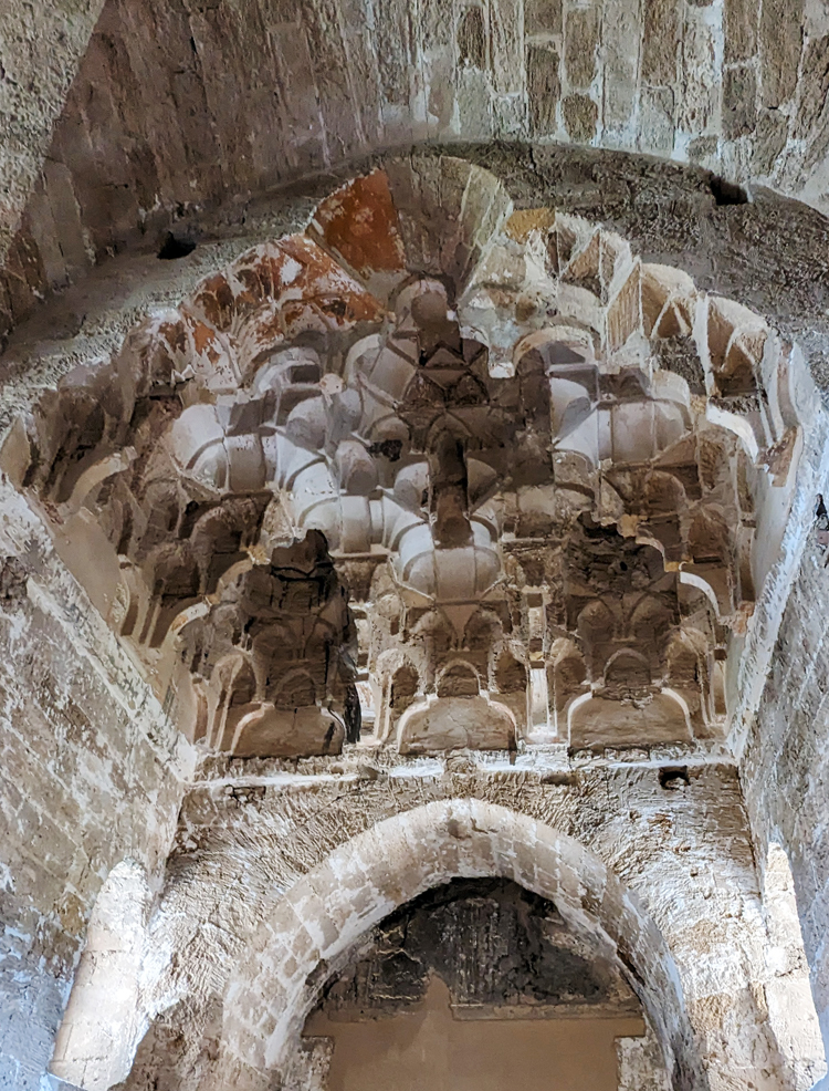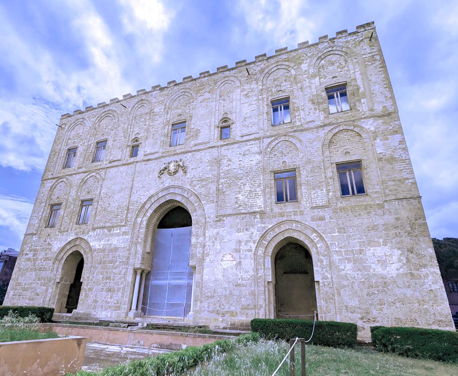 When things finally became less rocky for King William, he sought a retreat from Palermo, a place where he could hunt and relax. A site west of the city, not yet part of it, was selected for a summer retreat built to take advantage of seasonal sea breezes. If one wanted to hire experienced craftsmen that meant turning to Moorish ones remaining on the island. So instead of harsh Norman interiors, the palace was constructed with Arabic features, including arches vaulted with ornate honeycomb patterns known as muqarna, or mocarabe.