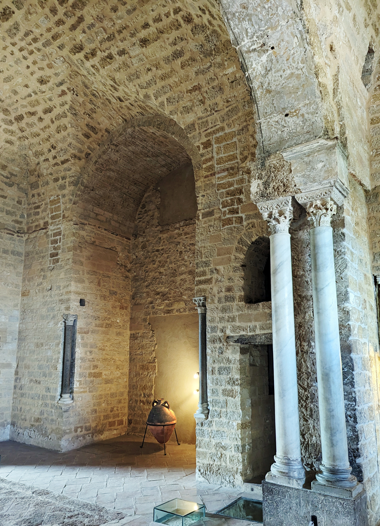 On the left: Interior of the Zisa Palace before restoration work closed this portion off temporarily. Matthias Sussan (matthias-suessen.de) Licence CC BY-SA via Wikimedia Commons