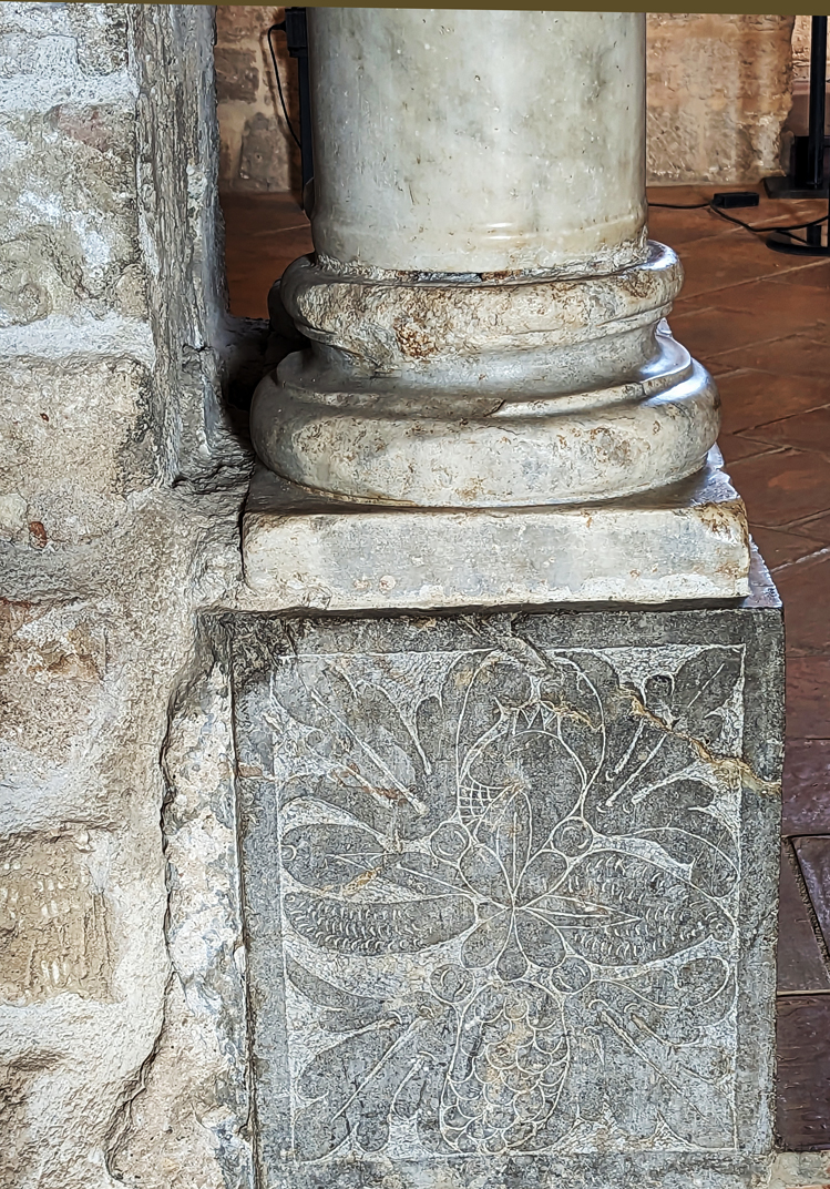 Above: Marble sepulcher marker of Anna, died in 1148, inscribed in Jewish, Latin, Greek and Arabic