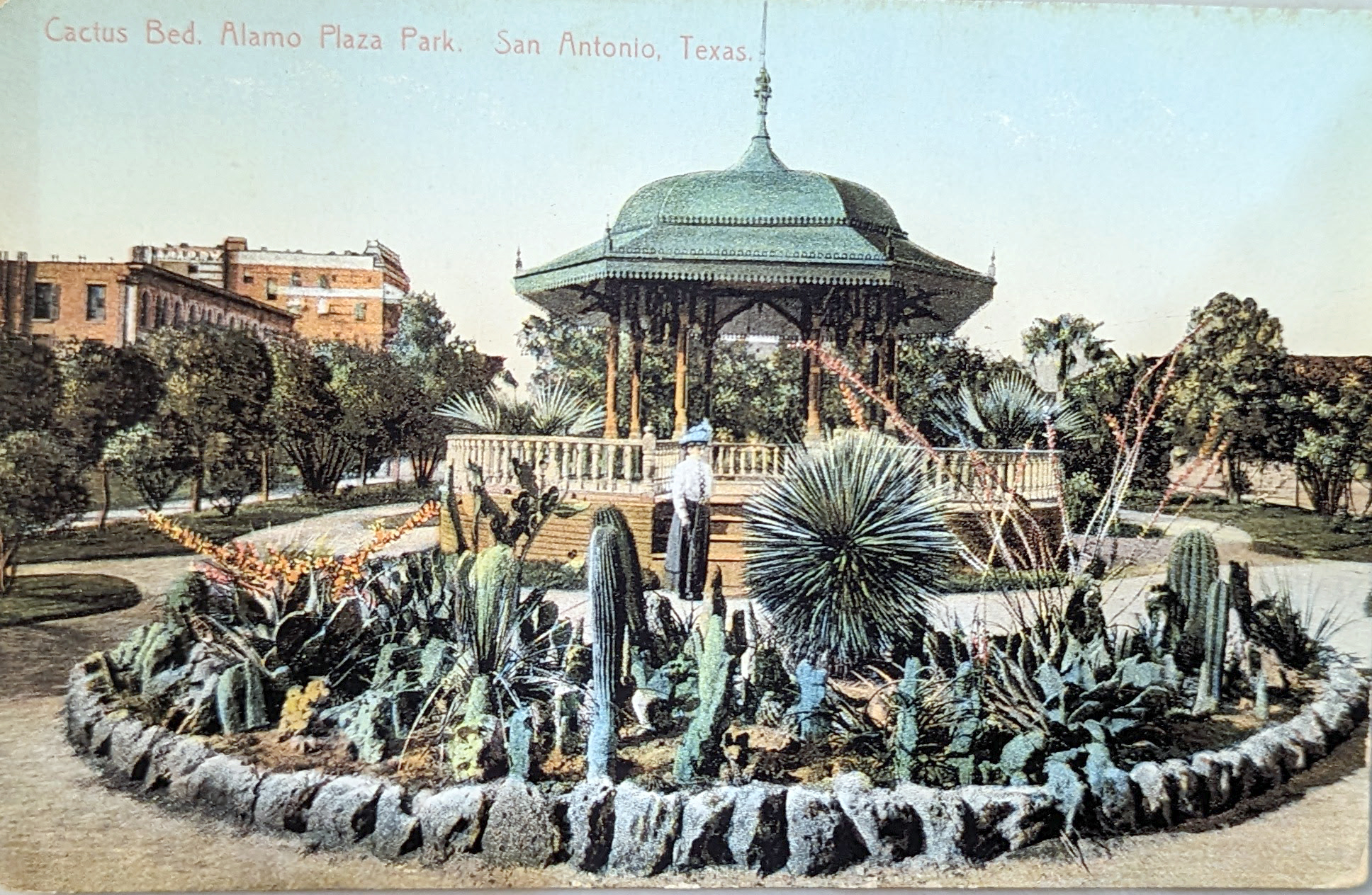 Few parts of the city have undergone as many altercation-causing alterations as the plaza. The stands of the chili queens were removed. Clara Driscoll secured her desired rose garden. Exotic palms and cacti were planted at some point. Gazebos and trees have come and gone and come again as dictated by swings in fashion trends.