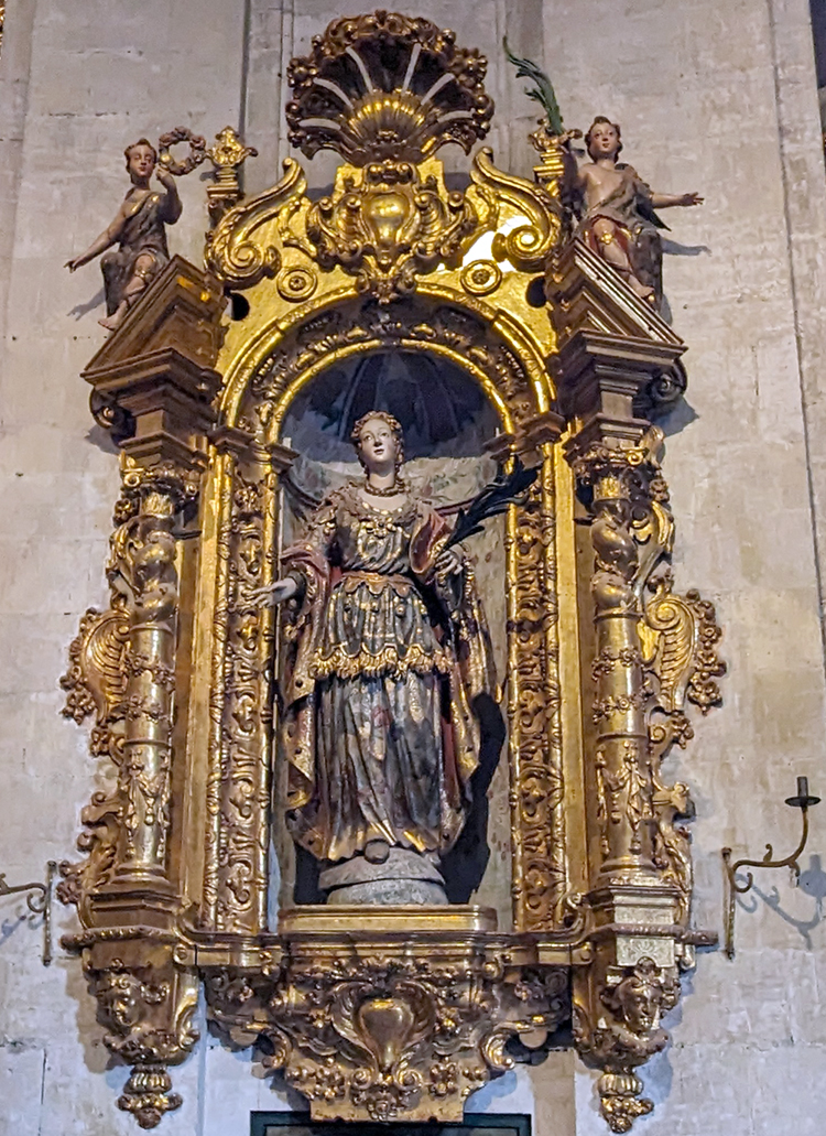 In the 17th century, an ornate chapel added inside the church was dedicated to Saint Eulalia, newly proclaimed patron saint of Oviedo. A nickel-plated casket displayed underneath the baldachin contains all that remains of Eulalia.