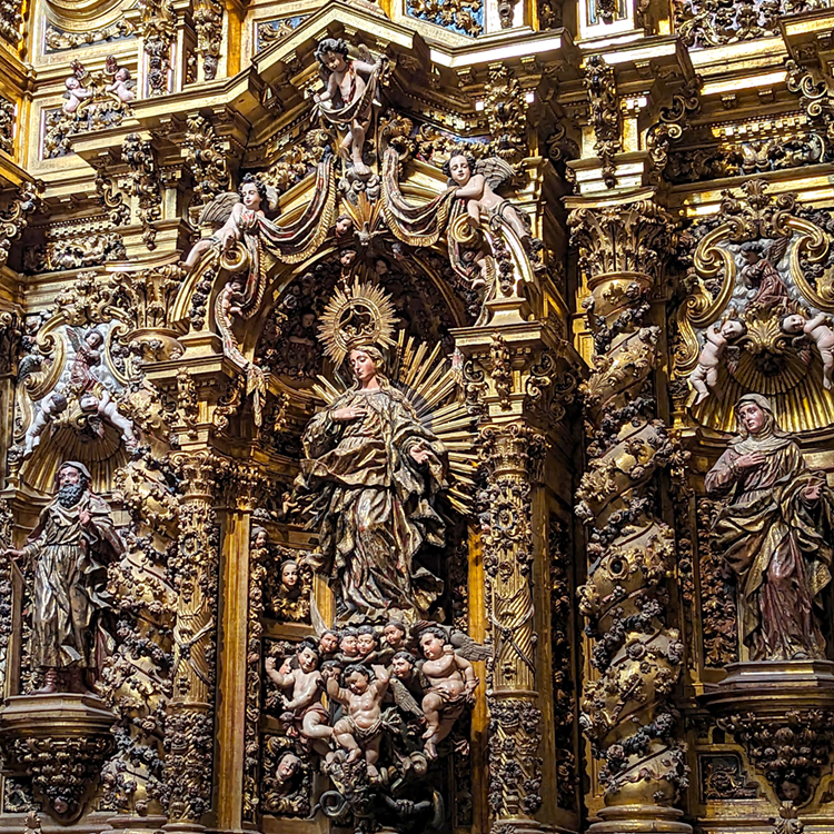 The bejeweled Cross of the Angels, so named because the workmanship was considered so fine only angels could have crafted it, was donated by King Alfonso II in 808. The cross is the symbol of the Cathedral and the city of Oviedo itself. Priceless.
